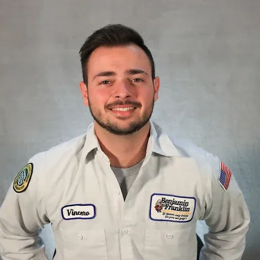 Vinny is a seasoned Benjamin Franklin Plumbing veteran with many years of hands-on plumbing experience. With hundreds of satisfied customers and numerous five-star reviews, he has built a reputation for quality workmanship and reliability. Vinny is a valued asset to our company and a trusted professional for our customers.